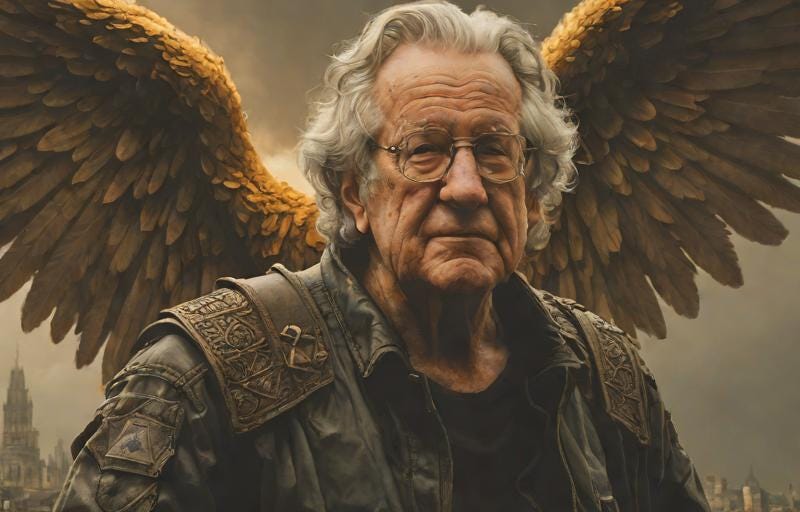 In her 2003 New Yorker profile on Chomsky, Larissa MacFarquhar writes of Chomsky that “he often seems baffled, even repelled, by the thought of actual people and their psychologies.” This coldness, she suggests, is a source both of his charisma and of much of the loathing he has inspired over the decades. To those who admire him, he seems a man of undiluted purpose and purity, his manner and decisions uninfluenced by the factors of psychology, self-interest, friendship, vanity, or civility that derail the rest of us in how we analyze and engage with the world. She quotes one of his colleagues and acolytes at MIT. “Noam is not a human being. He’s an angel.”